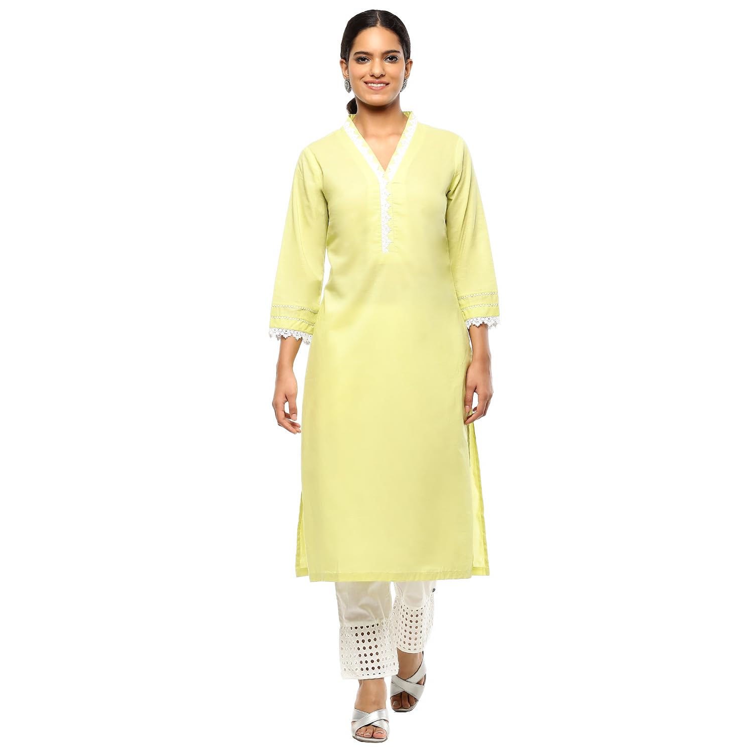 Biba Women’s Yellow Cotton Straight Kurta_46
