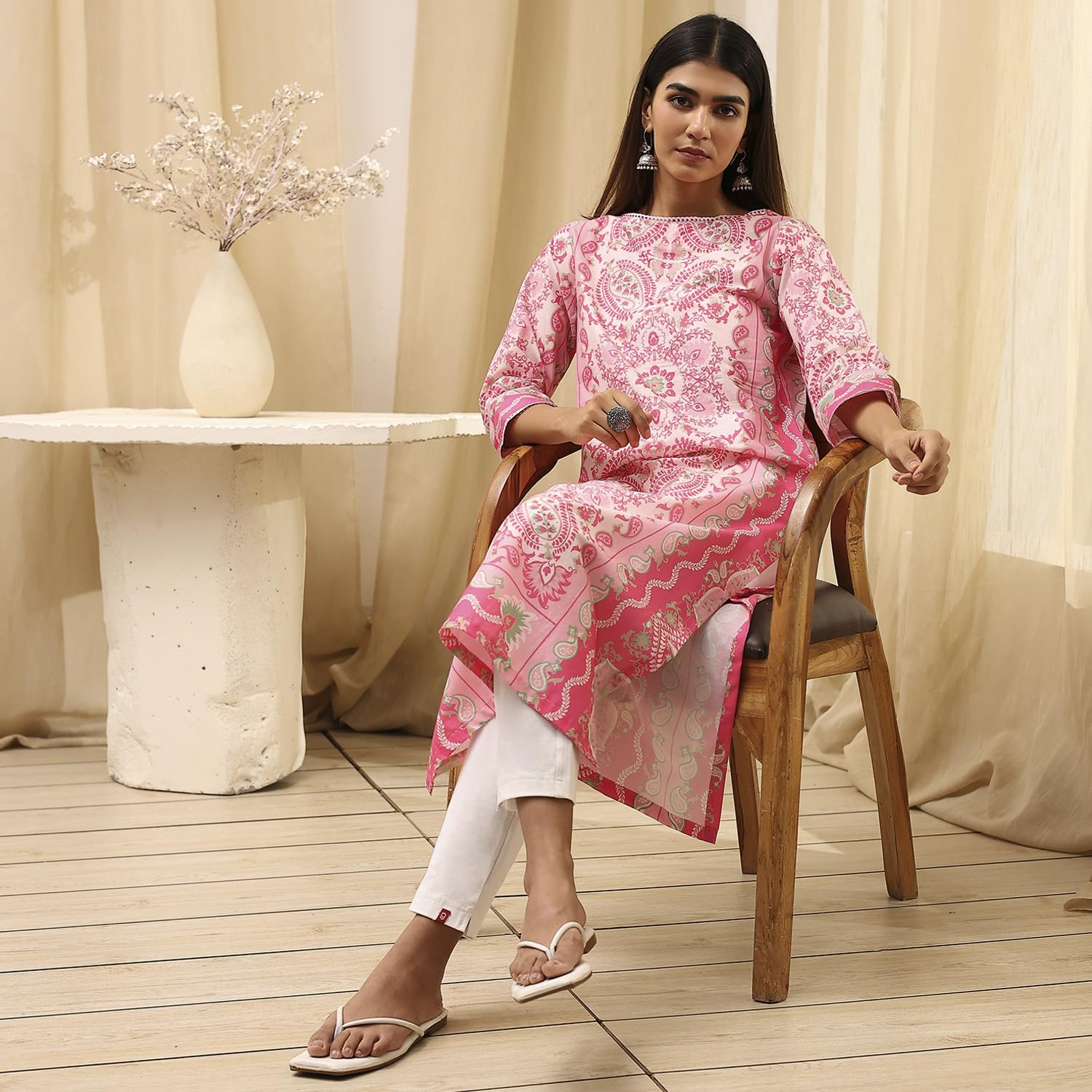 BIBA Women Cotton Straight Fit Straight Printed Kurta