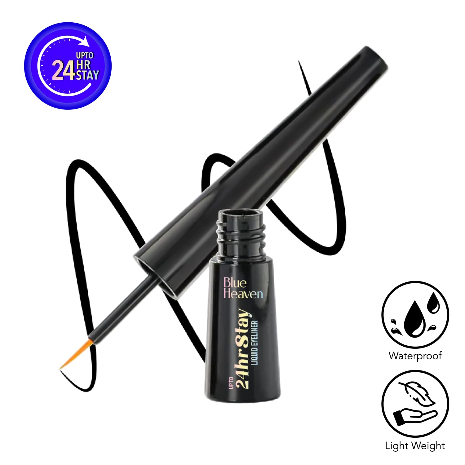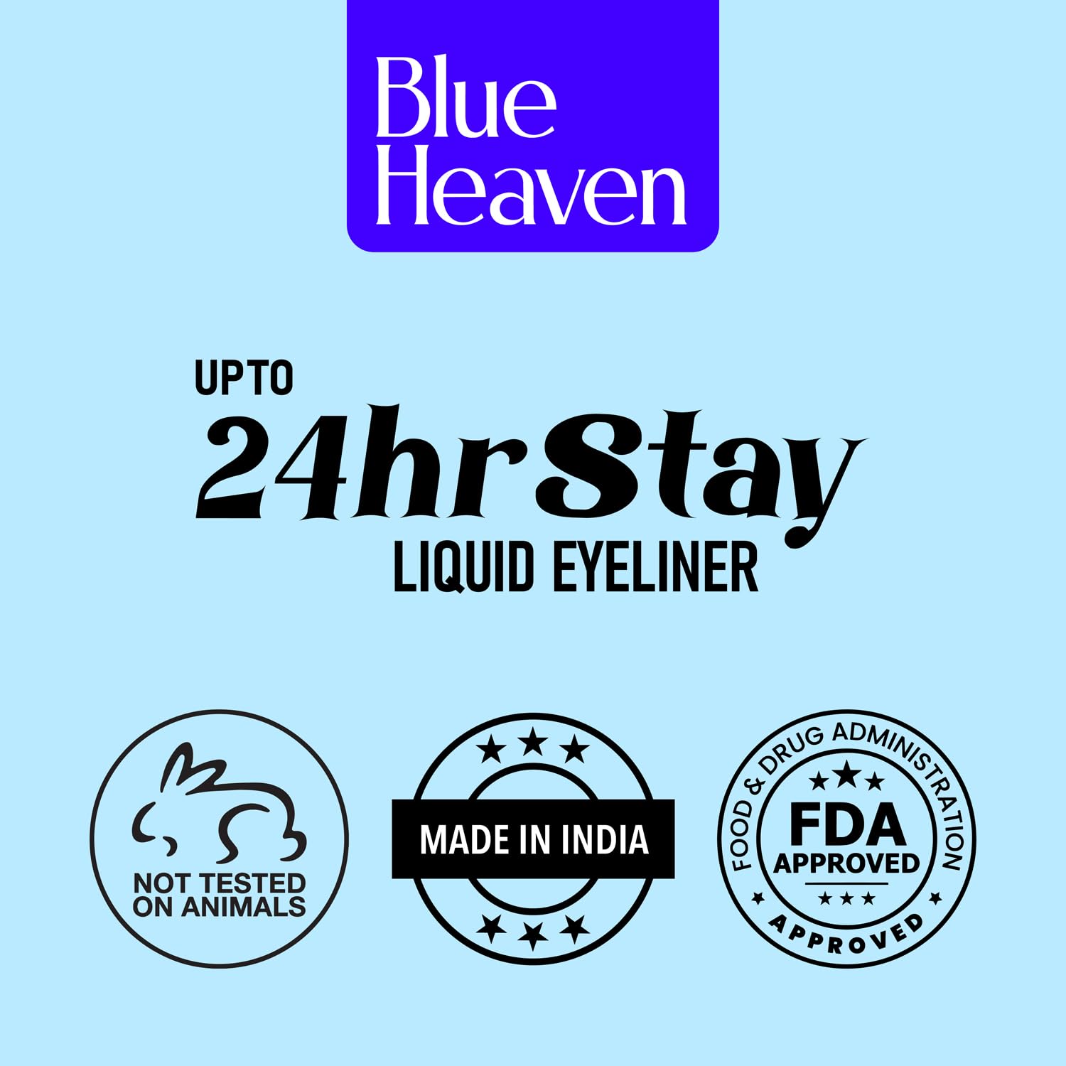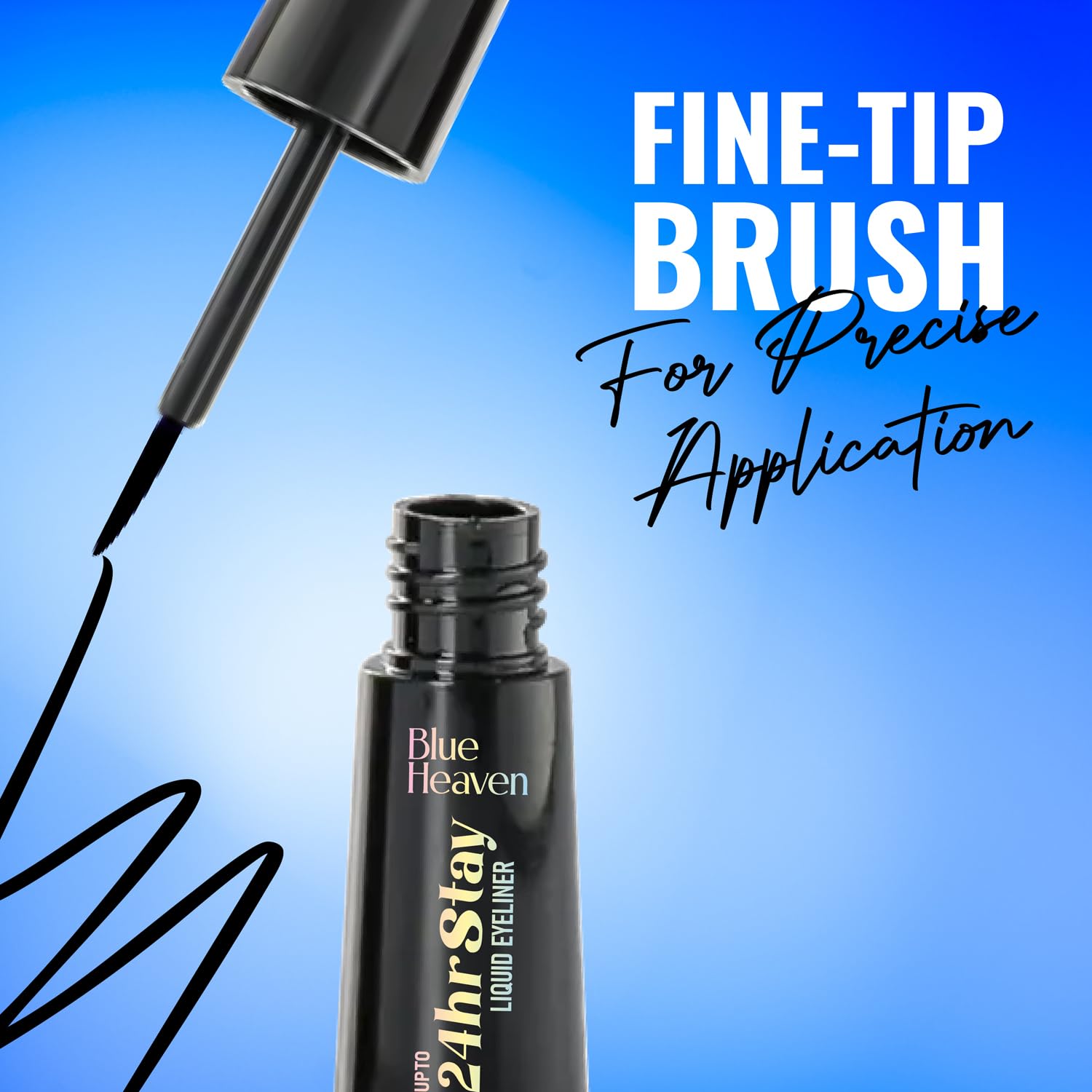 Blue Heaven 24hr Stay Liquid Eyeliner Waterproof Smudge Proof | Quick Dry, Fine-Tip Brush for Precision | Long-Lasting Eye Liner for Women | Black | 3ml