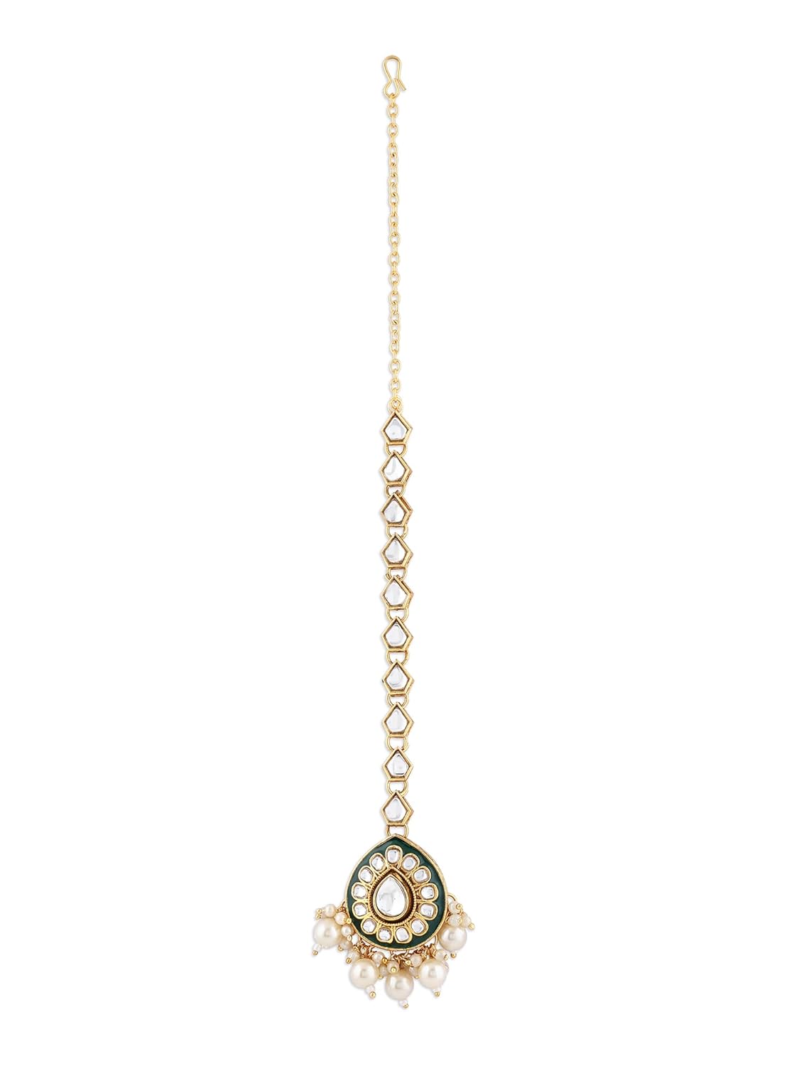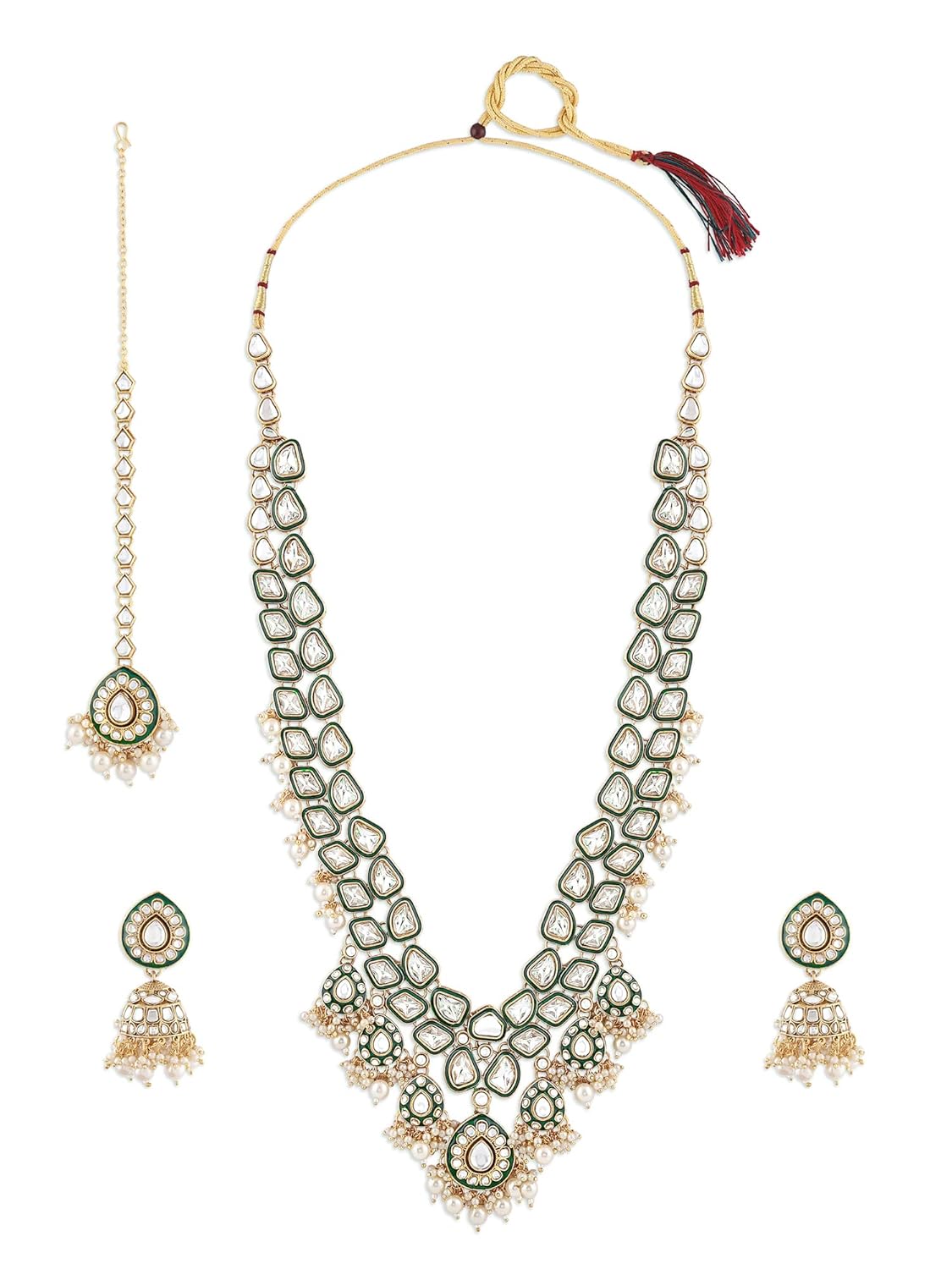 ZAVERI PEARLS Green Meenakari Kundan Bridal Long Dazzling Necklace Earring Maangtikka Set For Women-ZPFK17761